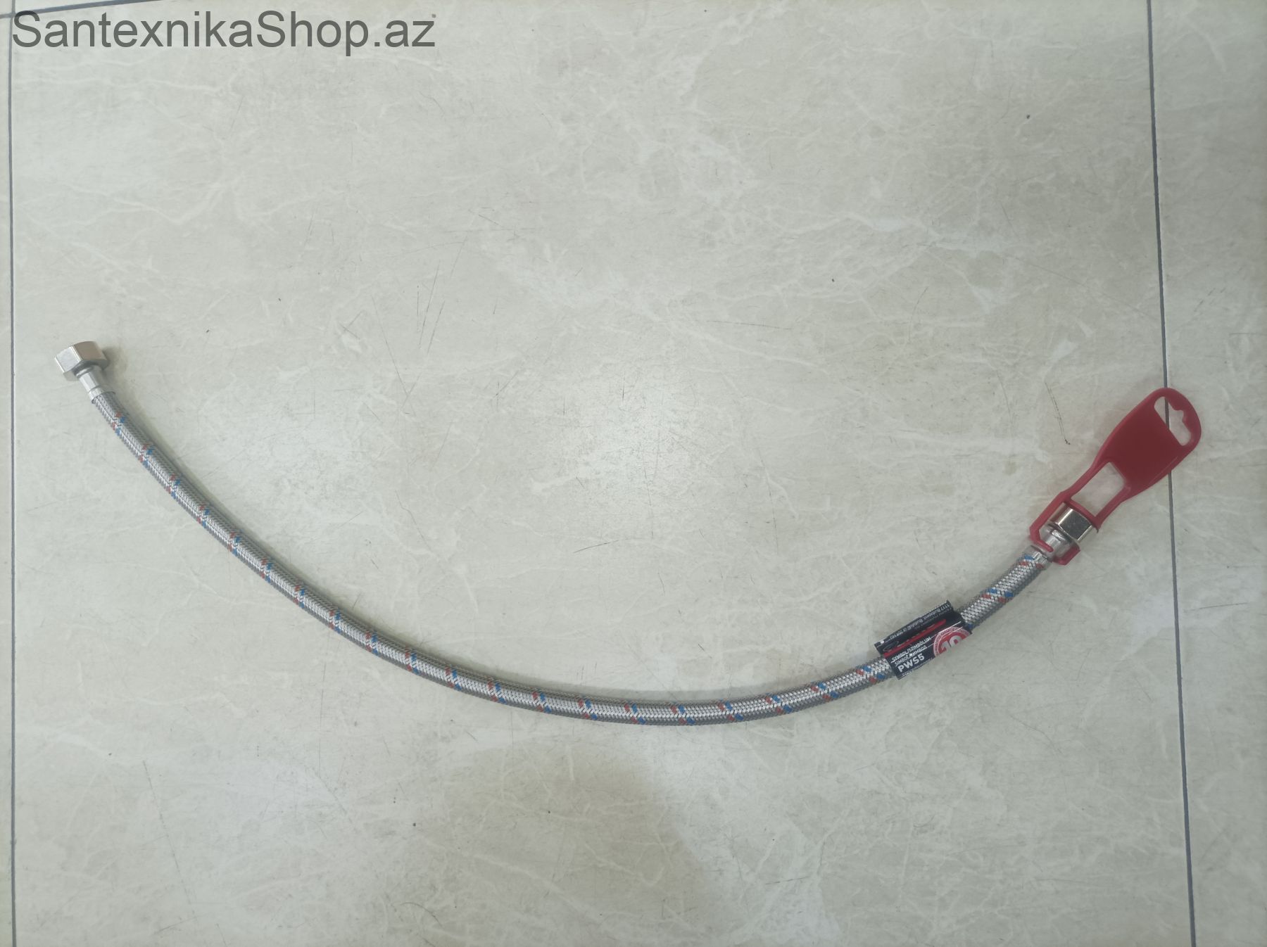 Paslanmayan poladdan hörülmüş, contalı birləşdirici şlanq, 3/8"-1/2” dişi – dişi