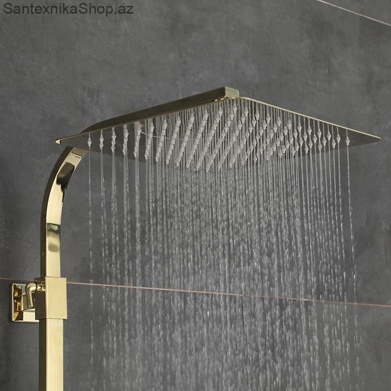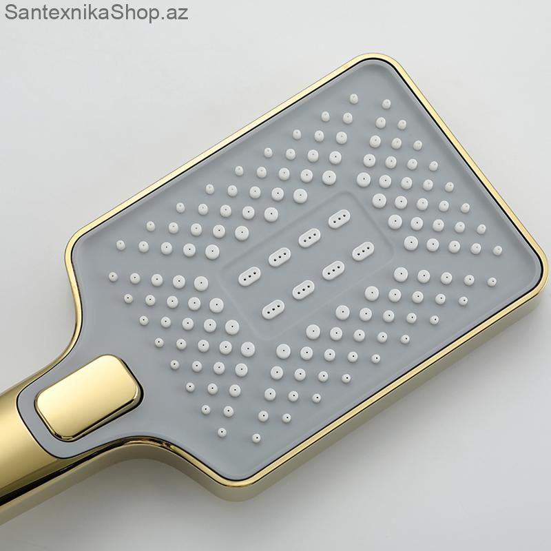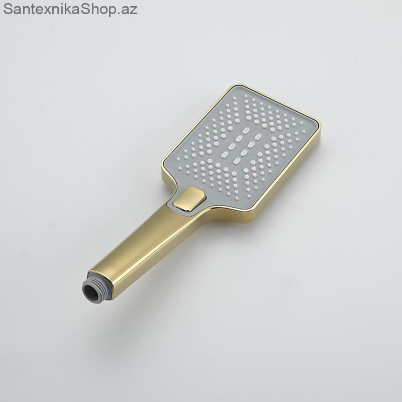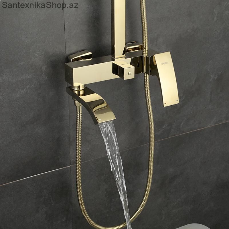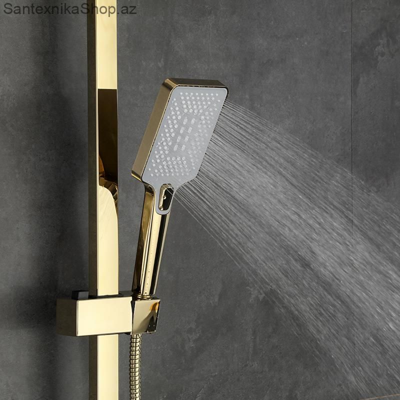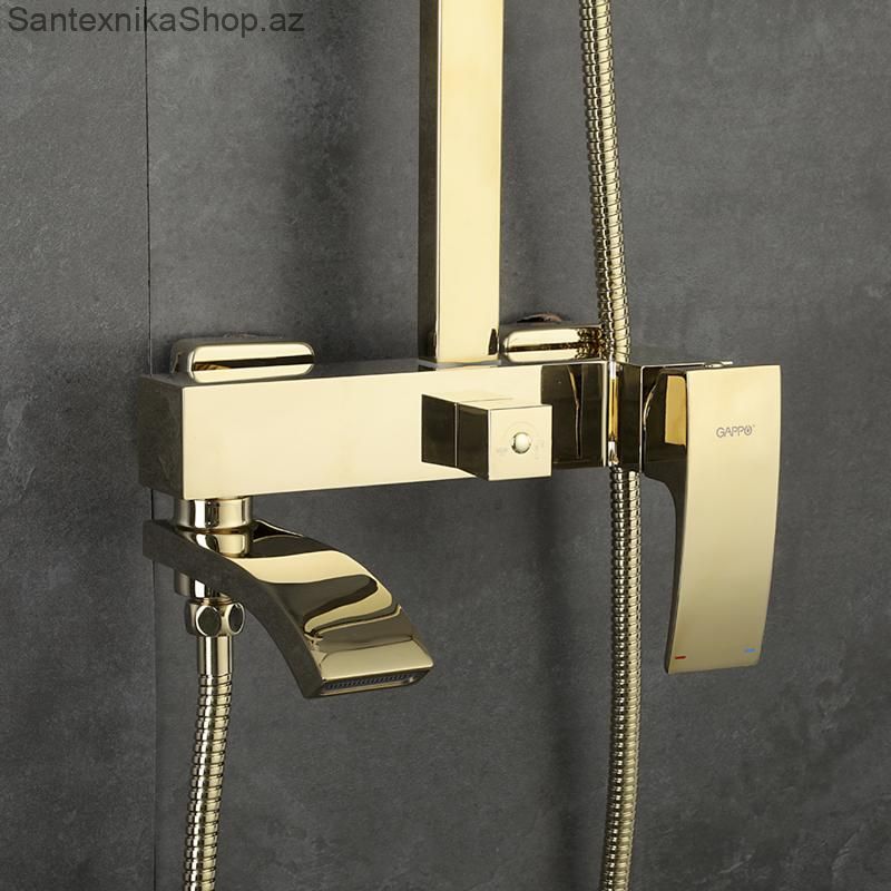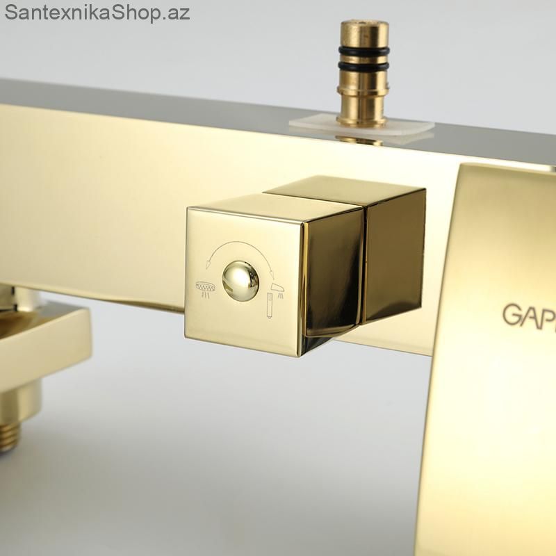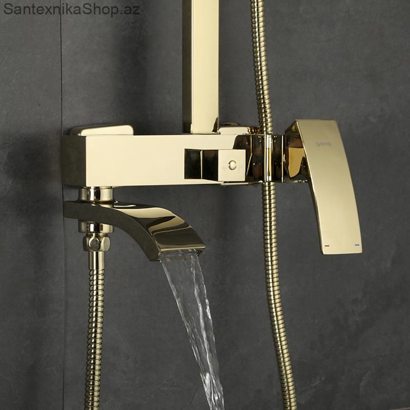 Gappo G2407-3 qızılı rəngli duş sistemi latundan hazırlanıb və fırlanan kran, böyük yağış duşu, ABS plastik əl duşu və 35 mm-lik keramika kartricdən ibarətdir.Zəmanət: 5 il.