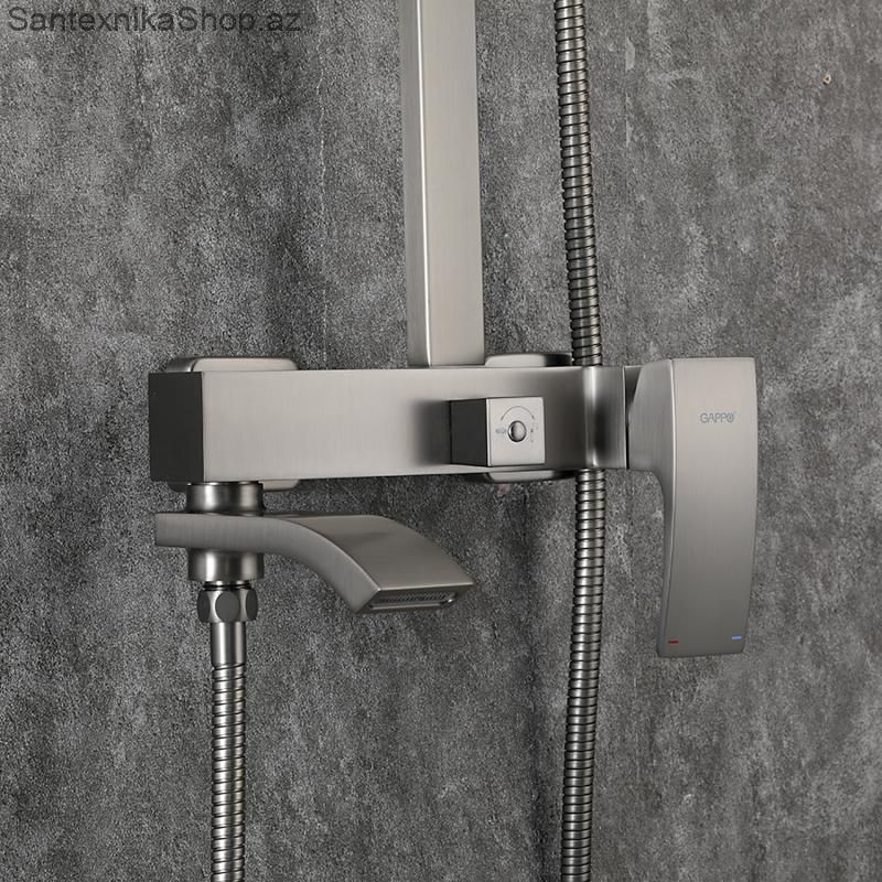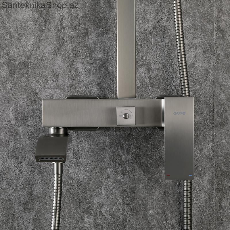 Gappo G2407-9 30x30 sm ölçülü, Top Poladı örtüklü yağış duş sistemi, ıatundan hazırlanmış fırlanan lüləli qarışdırıcı, paslanmayan poladdan hazırlanmış yağış duş başlığı və tək rejimli ABS əl duş başlığına malikdir. Zəmanət: 5 il.