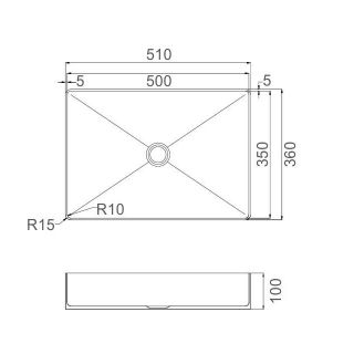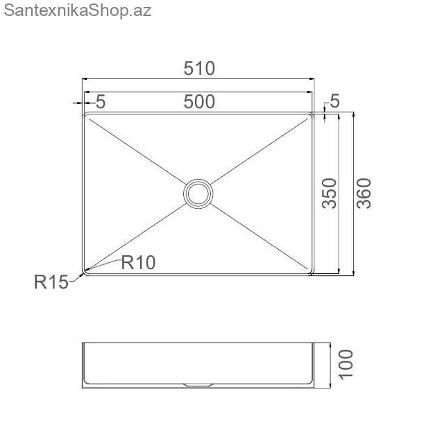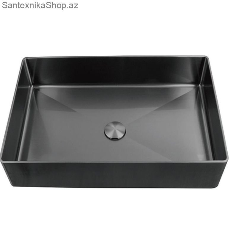 Mərmərüstü çaşka 510*360*h100 mm, Paslanmaz polad, antrasit rəng, bas-aç klapan ilə Təsvirinə keçmək