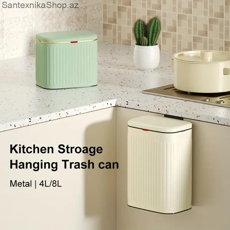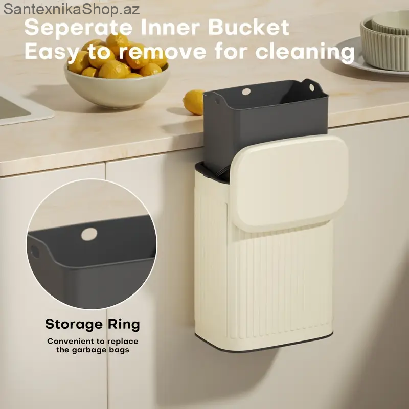 Universal Zibil vedrəsi (tullantı qutusu) yerdən və asma funksiyalı, ağ, 8 litrlik
