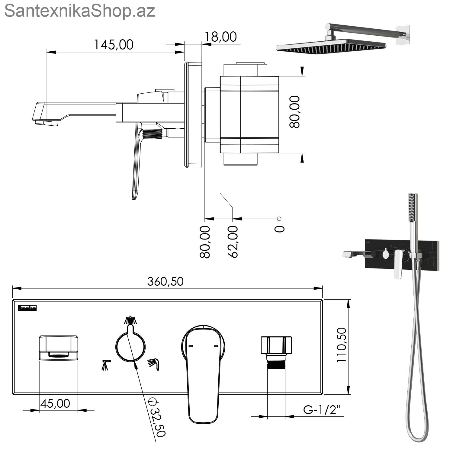 • Minimal dizaynı sayəsində müxtəlif küvet formalarına uyğunlaşır