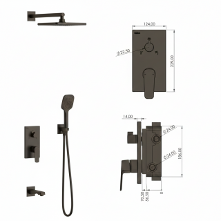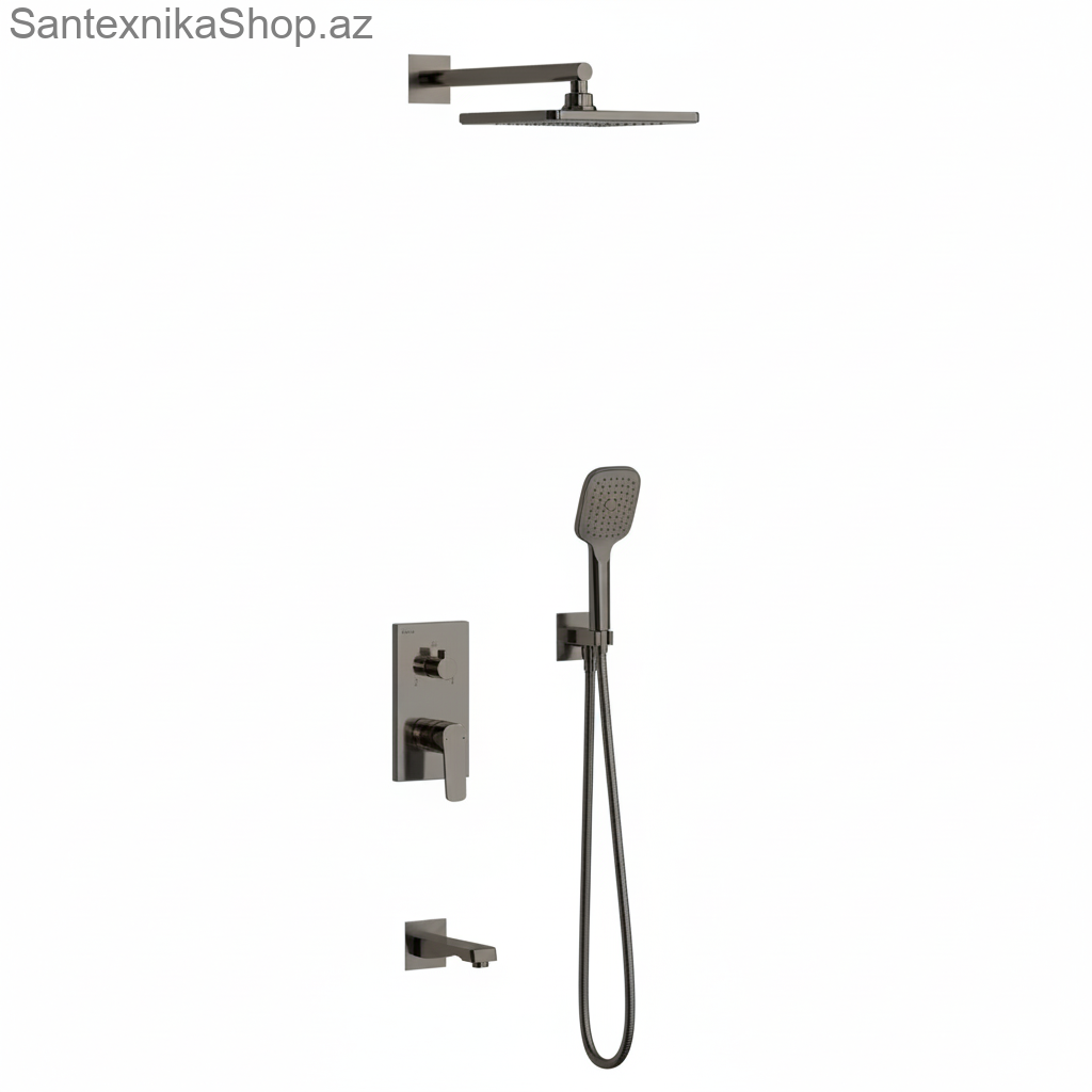 Teska Simena Üçyönlü Ankastre Duş Batarya Seti (Gun Metal)