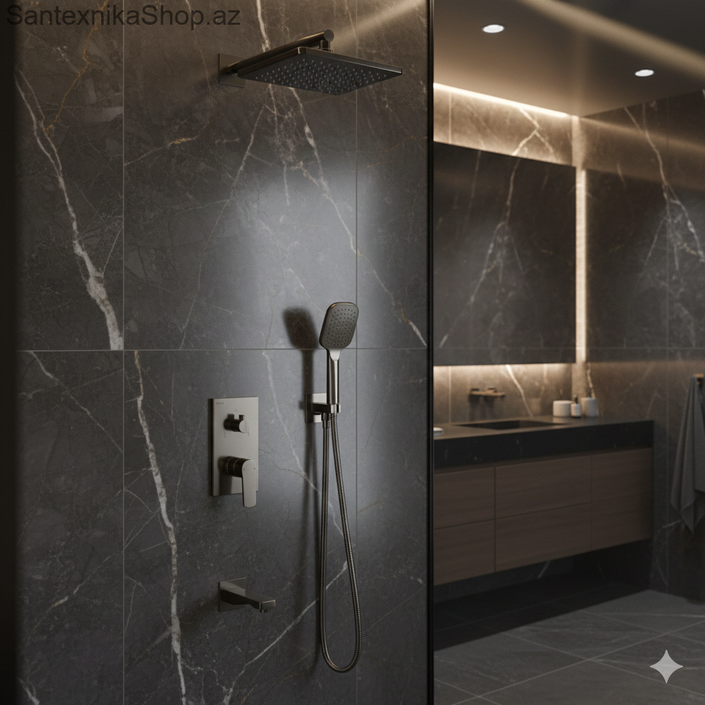 Vanna otağında texnoloji və müasir bir atmosfer yaratmaq istəyərkən, standart xrom rəngli avadanlıqlar çox sadə və sönük görünür. Eyni zamanda, açıq səthli duş sistemləri divarda çox yer tutur, boruların görünməsi isə vizual olaraq məkanı daraldır və təmizlik işlərini çətinləşdirir. ​ Bu problem, "Industrial", "Loft" və ya ultra-modern üslubda dizayn edilmiş, tünd tonların və metal teksturaların üstünlük təşkil etdiyi vanna otaqlarında yaranır. İstifadəçi həm vizual genişlik, həm də suyun üç fərqli mənbədən (tropik duş, əl duşu və kran çıxışı) idarə olunmasını tələb etdikdə bu dəst ideal seçimə çevrilir. ​ Bazarda tapılan bir çox "Gun Metal" rəngli məhsullar əslində sadə boya ilə örtülür ki, bu da zamanla soyulur və ya su ləkələrini çox qabarıq göstərir. Həmçinin, mürəkkəb ankastre (gizli) sistemlərin quraşdırılması və sonradan texniki servisi çətin olur, bu da alıcılarda tərəddüd yaradır. ​ Teska Simena (Gun Metal) dəsti Türkiyənin yüksək texnologiyalı istehsal standartları ilə bu tərəddüdləri aradan qaldırır. Xüsusi PVD örtük texnologiyası sayəsində Gun Metal rəngi metalın öz daxili rəngi kimi görünür, cızılmır və parıltısını illərlə itirmir. Üçyönlü mexanizm sayəsində tropik yağış effekti, əl duşu və vanna doldurmaq üçün kran çıxışı arasında keçid etmək çox asandır. Gizli quraşdırma gövdəsi divarın içində tam təhlükəsiz yerləşir və çöldə yalnız şık idarəetmə paneli qalır. ​ Teska Simena (Gun Metal) dəstini seçməklə siz vanna otağınızda futuristik və lüks bir görüntü əldə edəcəksiniz. Boruların gizli olması məkanın təmizliyini və genişliyini artıracaq, Gun Metal rənginin verdiyi tünd metal zərifliyi isə evinizin dizayn dəyərini yüksəldəcək. Siz hər gün suyun gücündən və estetik mükəmməllikdən zövq alacaqsınız.
