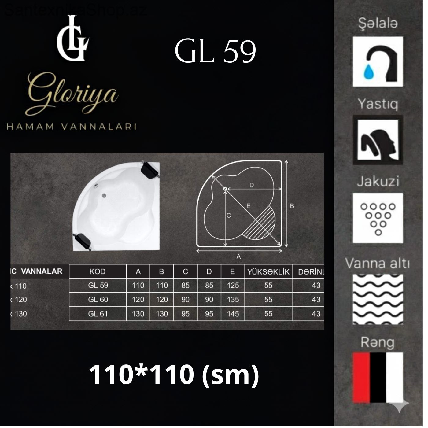 Künc Vannası GLORİYA GL-59 110*110 (sm)